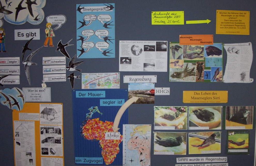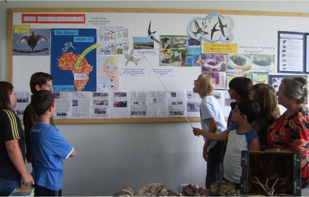 Introduction One of the aims of the Bavarian Curriculum for Elementary Schools is for pupils to be trained in social skills and it encourages teachers to practise with them the practical application of democratic rules of ethics. Furthermore it calls for the children to be made aware of the importance of the environment and nature and, in particular, learn to respect nature and be conscious of the need to protect it. In addition, in 2000 the Minister of Education appealed to all schools to work towards distinguishing individually. Since the opening of the Hans-Herrmann-School[1] in 1960, a group of Common Swifts has been living at the school building and breeding in the shutter boxes of the windows each year. In April 1996 the whole school building had to undergo a refurbishment, including the installation of new windows. The bird population would clearly be at risk from these building operations.